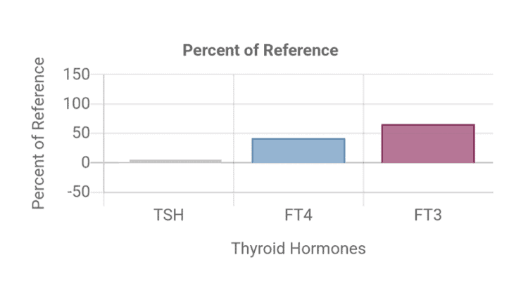 As expected, my TSH (Thyroid Stimulating Hormone, the pituitary hormone that tells the body how much thyroid hormone to make) is low because the amount of free T3 is optimal. This is a classic feedback loop where free T3 provides feedback on the pituitary gland, indicating that there isn’t a need to make more thyroid hormone. Think of it like a thermostat. When the room gets warm enough, there is feedback on the thermostat that no additional heat is required, and it turns it off until the room gets cold again.