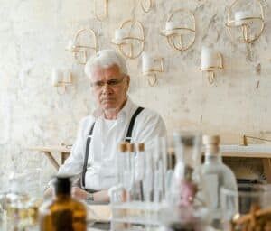 Body odor can be influenced by eating foods such as onions, garlic, ginger, and certain spices, as well as by medications. However, “old people smell” mainly comes from 2-nonenal, a volatile compound formed by the oxidative breakdown of palmitoleic acid and vaccenic acid, which are two omega-7 unsaturated fatty acids that increase on the skin from about age 40 onwards [1].