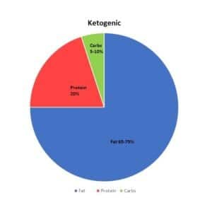 The classic Ketogenic Diet (KD) has a 4:1 ratio i.e. 4 parts of fat for every 1 part protein and carbs. In the classic Ketogenic Diet, 90% of calories come from fat, 6% from protein, and only 4% of calories come from carbohydrate.