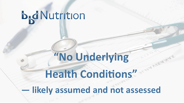 If a person hasn’t had their waist circumference, blood sugar or pressure, or cholesterol assessed, then they are assumed to have no underlying health conditions. Not measuring it doesn’t mean it doesn’t exist.